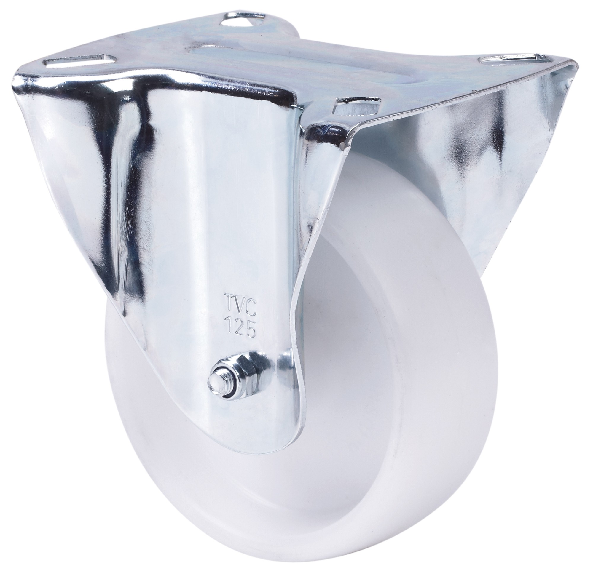 ALEX – RUEDA FIJA 17TVC125-TP POLIAMIX BLANCO EJE LISO
