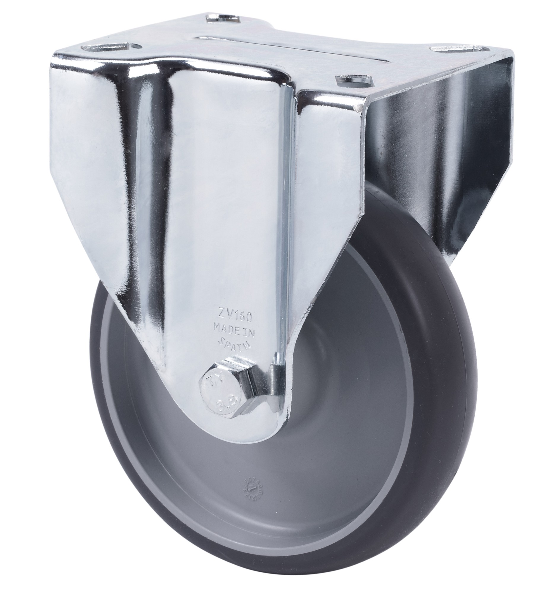 ALEX – RUEDA FIJA 17ZV160-PGZN POLIAMIX-GOMA GRIS INYECT.EJE LISO