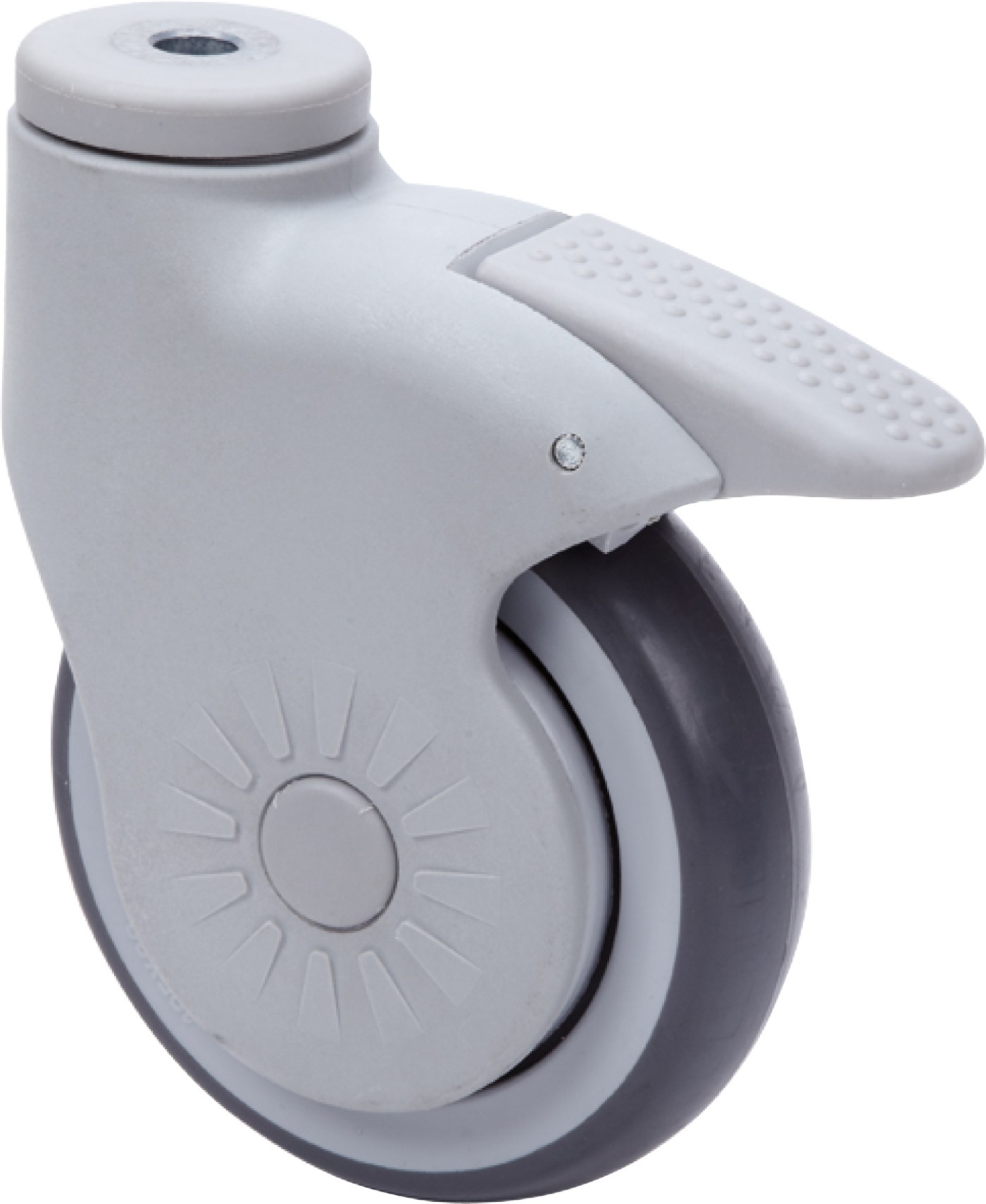 ALEX – RUEDA GIRATORIA.PLACA 10BSR40-PGI POLIAMIX-GOMA GRIS EJE LISO