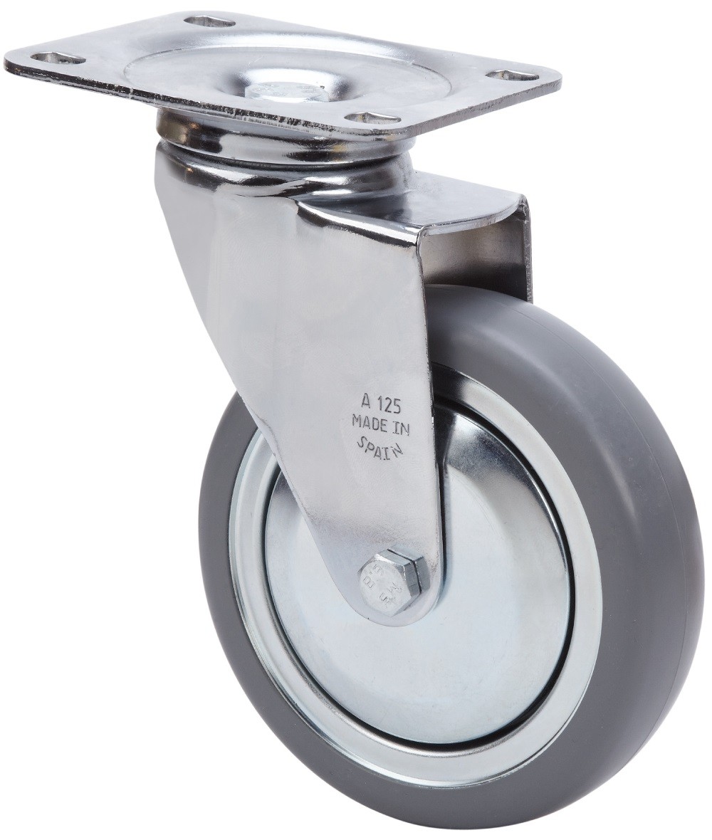 ALEX – RUEDA GIRATORIA.PLACA 10BSR60CP-PGI POLIAMIX-GOMA GRIS EJE LISO
