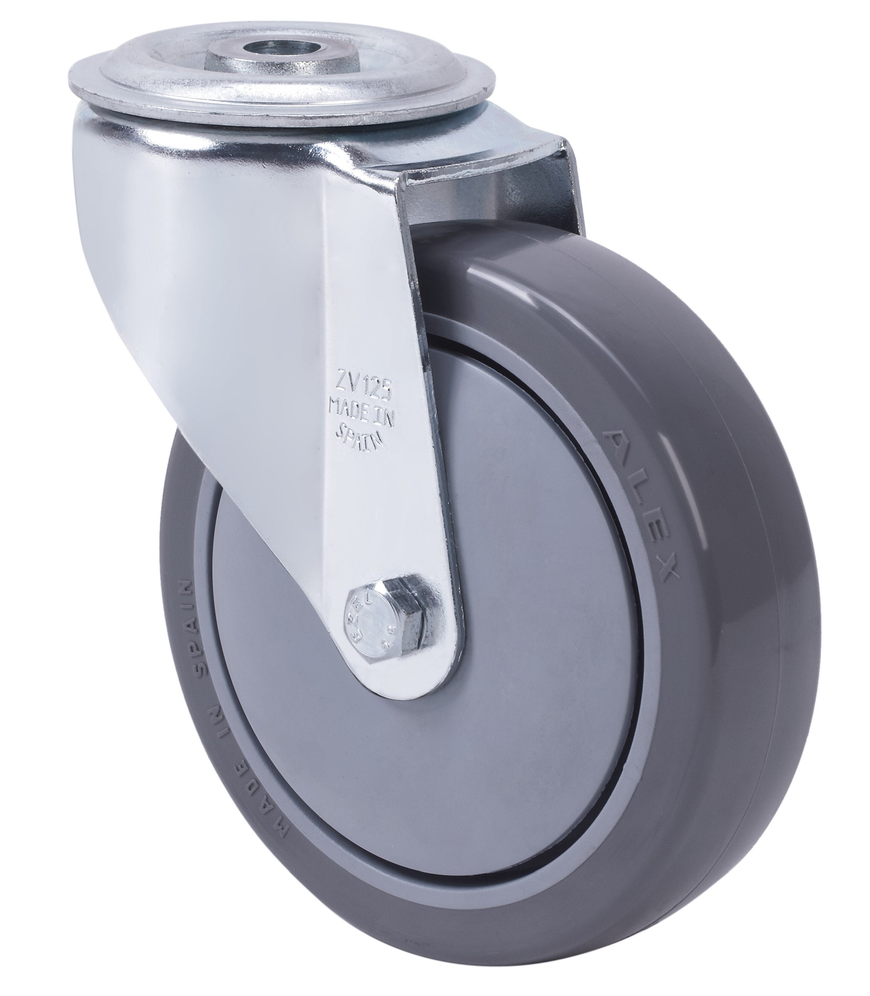 ALEX – RUEDA GIRATORIA.AGUJERO M10 20ZVL100CP-PUISB POLIP.-POLIUR.GRIS EJE BOLAS