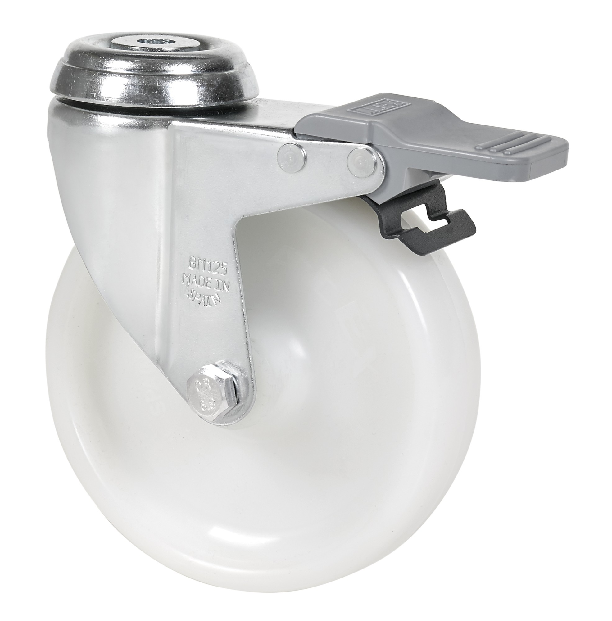 ALEX – RUEDA GIRATORIA.AGUJERO M10 FRENO 20BHAFD125-UT POLIAMIX BLANCO EJE LISO