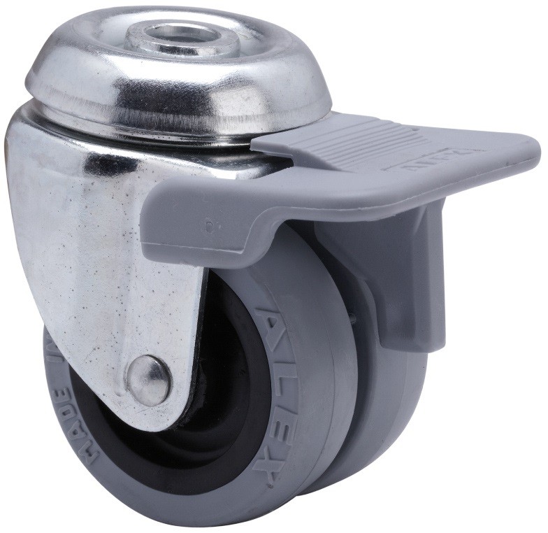 ALEX – RUEDA GIRATORIA.AGUJERO M10 FRENO 20IFNR50-PGI POLIAMIX-GOMA GRIS (DOBLE) LISO