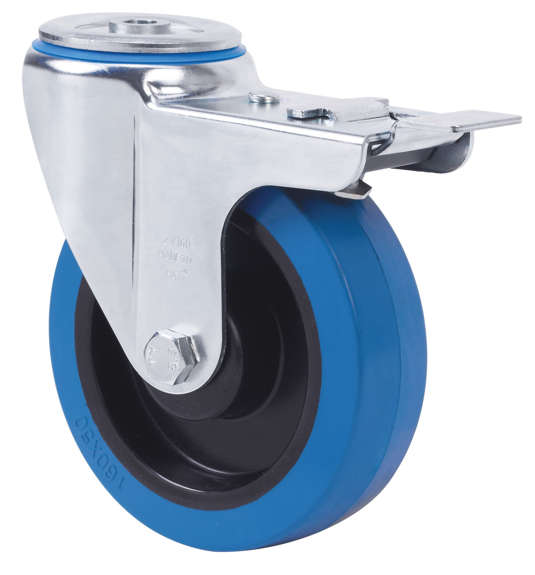 ALEX – RUEDA GIRATORIA.AGUJERO M10 FRENO 20ZVLFD80-PGMR POLIAMIX-GOMA AZUL RODILLOS
