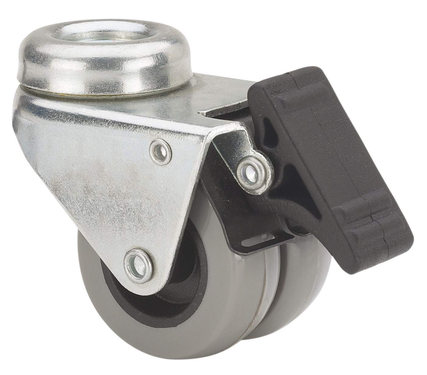 ALEX – RUEDA GIRATORIA.AGUJERO M10 FRENO 410-050-5 POLIAMIX-GOMA GRIS (DOBLE)EJE LISO