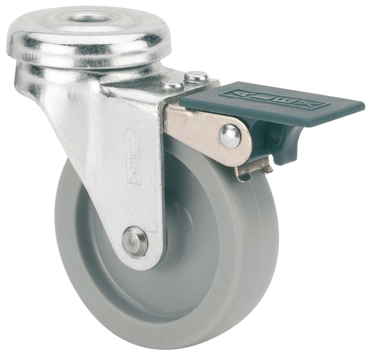 ALEX – RUEDA GIRATORIA.AGUJERO M10 FRENO 602-060-5 POLIAMIX GRIS EJE LISO