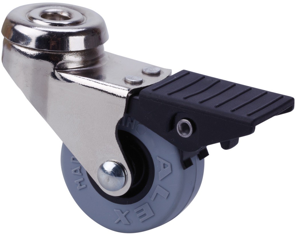 ALEX – RUEDA GIRATORIA.AGUJERO M10 FRENO NIQ.21BDRFN60CP-PGI POLIAMIX-GOMA GRIS LISO
