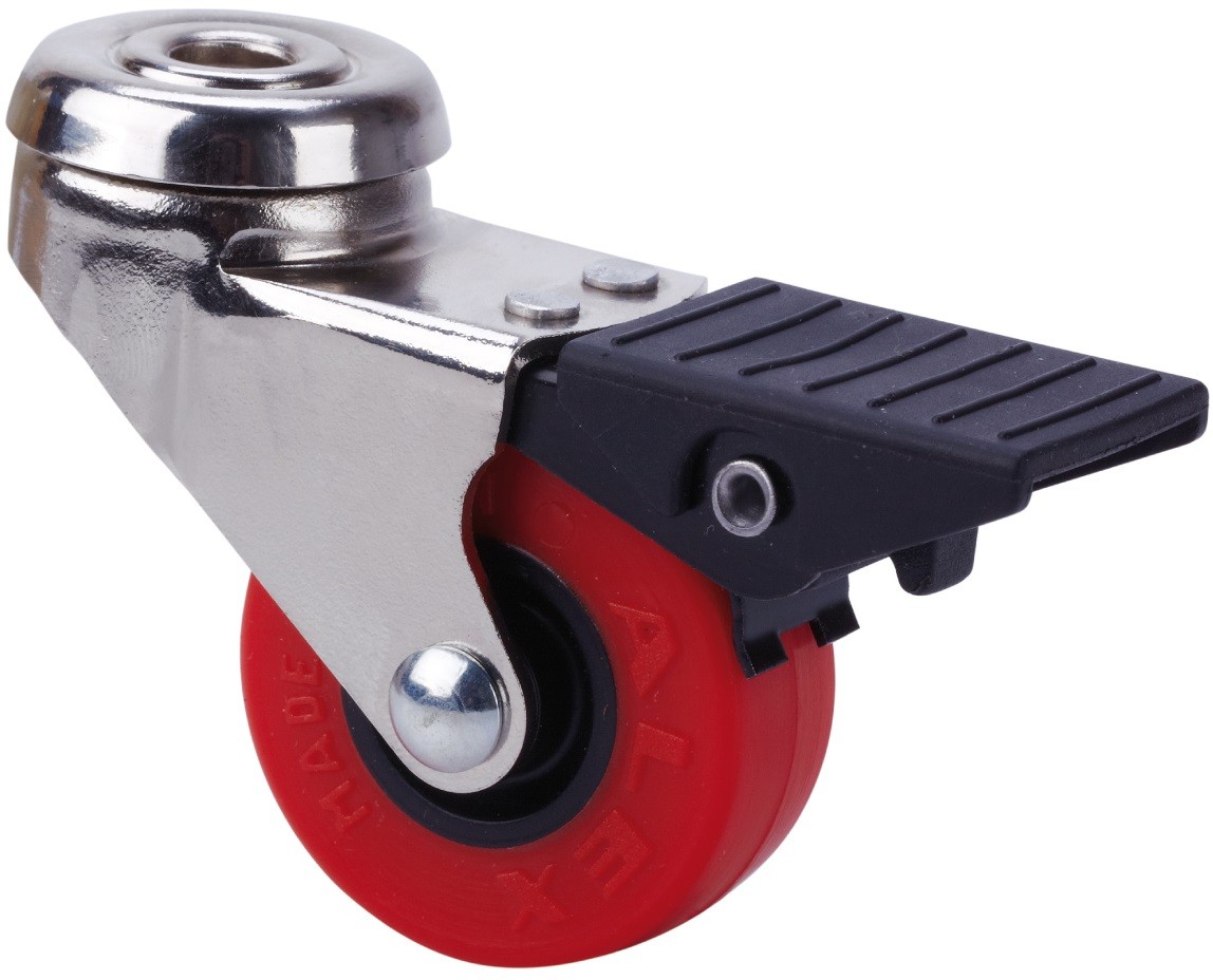 ALEX – RUEDA GIRATORIA.AGUJERO M10 FRENO NIQ.21BDRFN60CP-PPI POLIAMIX-POLIUR.ROJO LIS