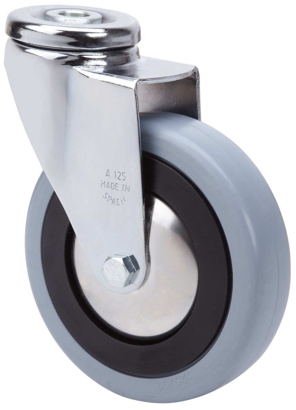 ALEX – RUEDA GIRATORIA.AGUJERO M12 20A100CP-PGAN POLIAMIX-GOMA GRIS EJE LISO