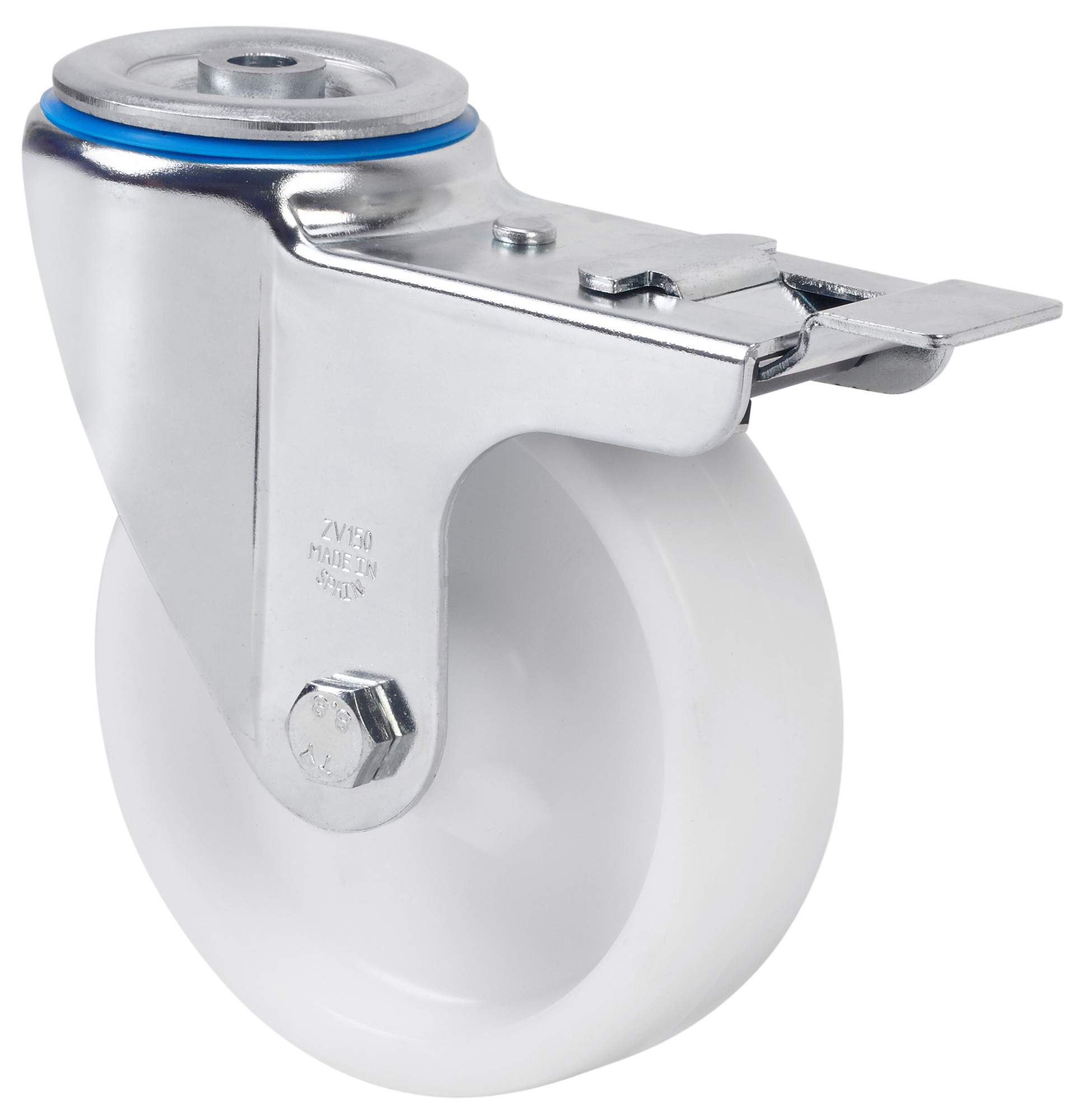 ALEX – RUEDA GIRATORIA.AGUJERO M12 FRENO 20ZVFD125-UT POLIAMIX BLANCO EJE LISO