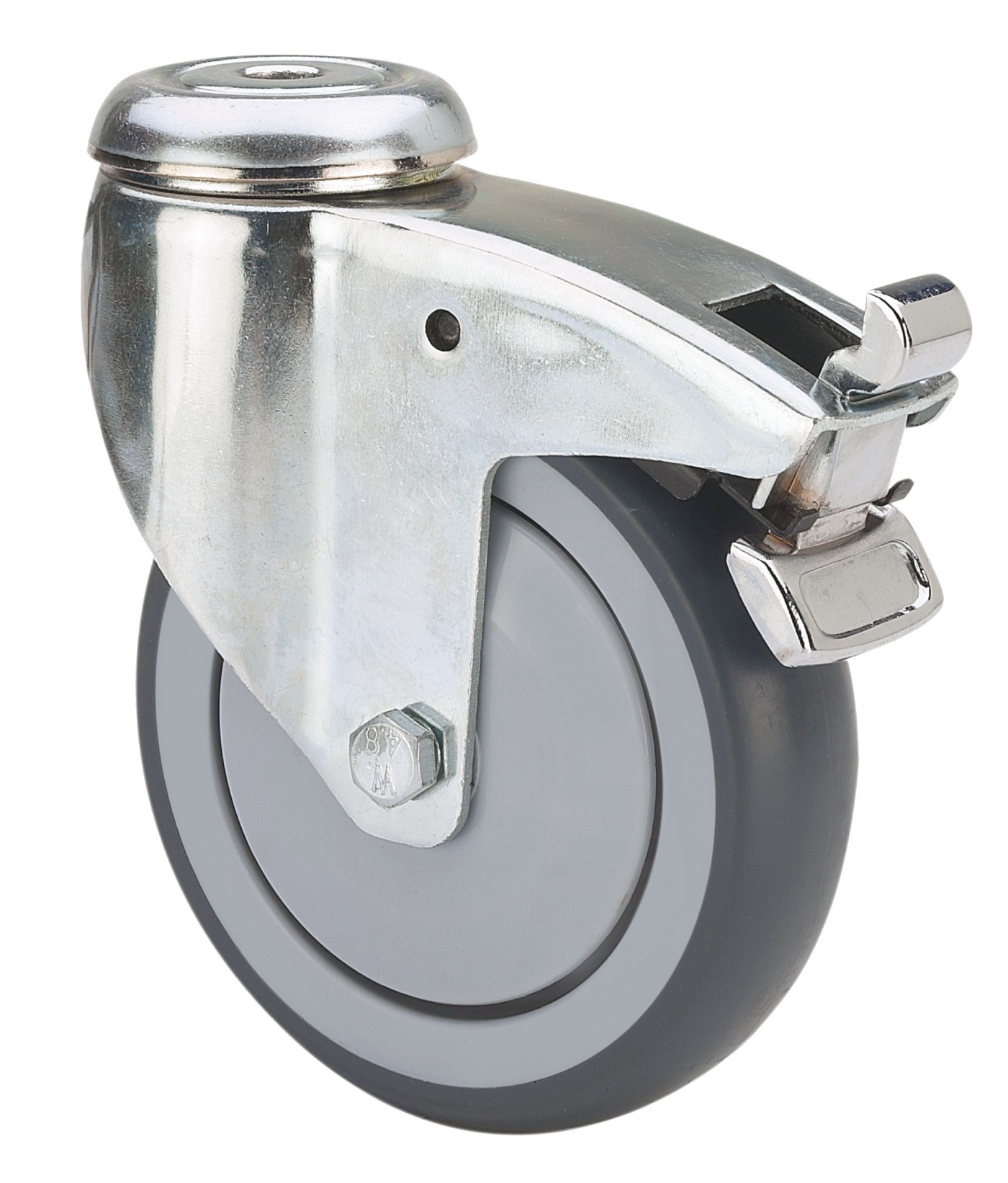 ALEX – RUEDA GIRATORIA.AGUJERO M12 FRENO 300-150-5 CP POLIAMIX-GOMA GRIS EJE BOLAS
