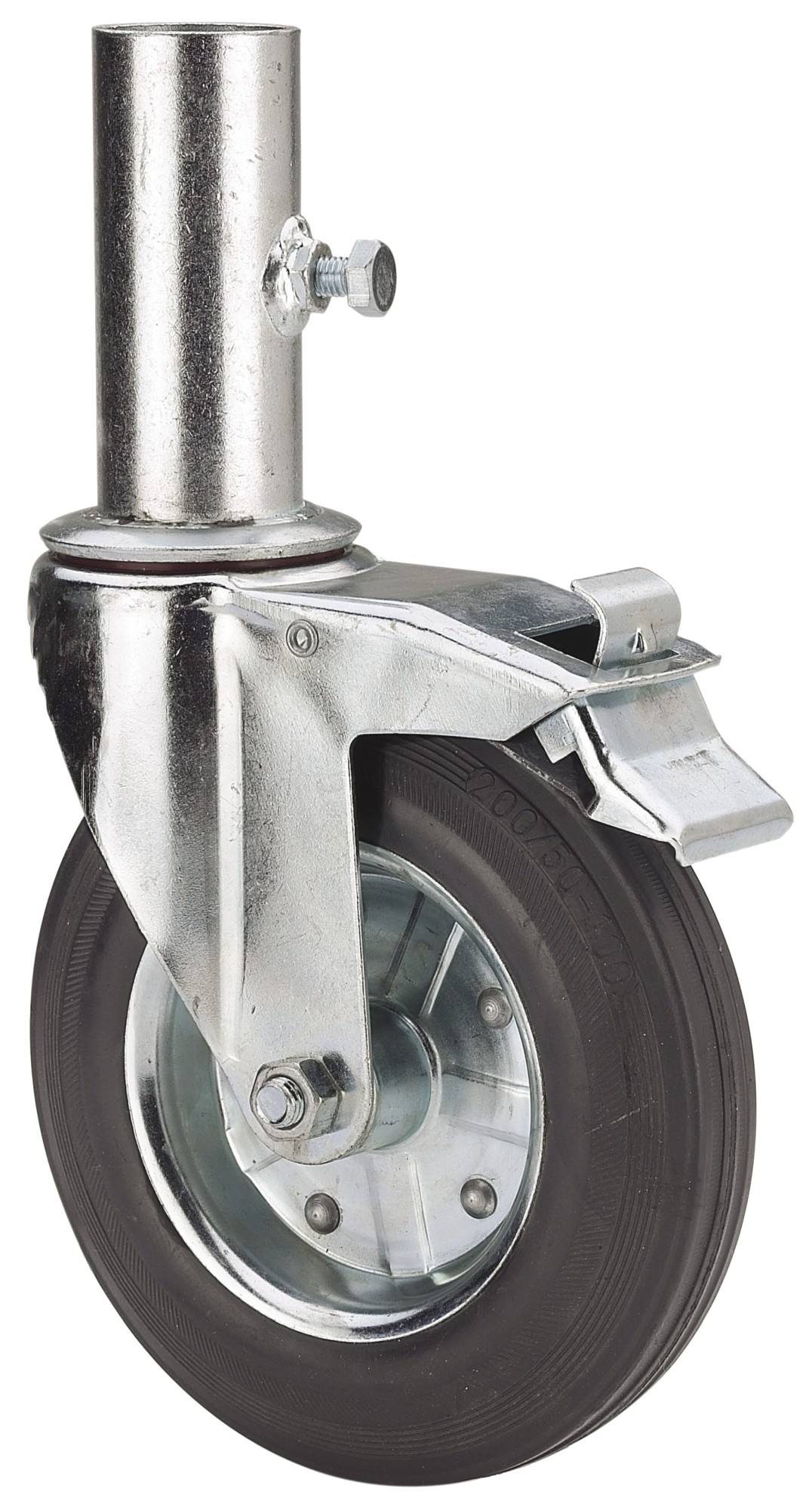 ALEX – RUEDA GIRATORIA.ANDAMIO EUR.FRENO 201-200-9 METALICO-GOMA NEGRA RODILLOS