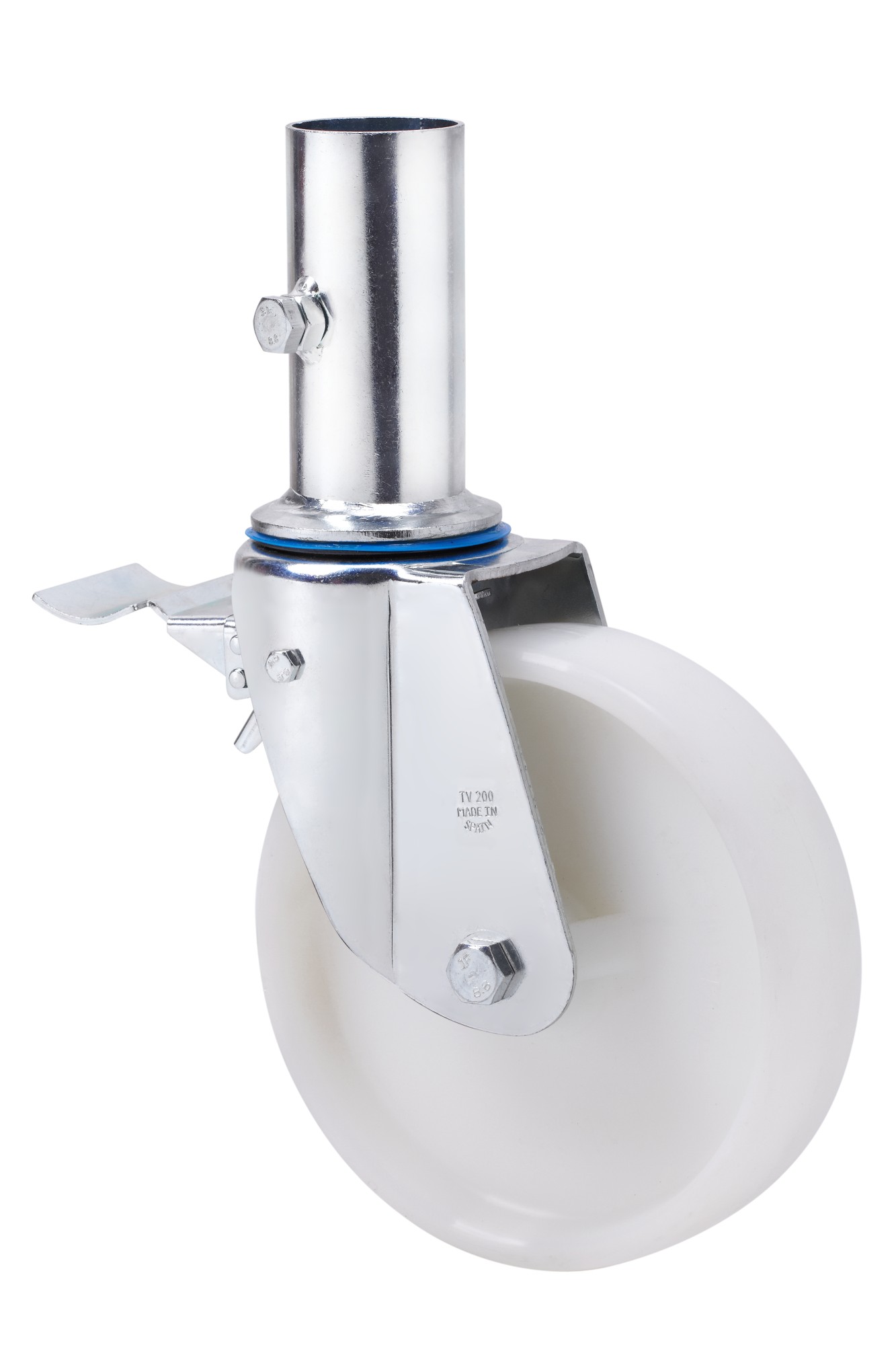 ALEX – RUEDA GIRATORIA.ANDAMIO FRENO 12TVAFD200-TN NYLON BLANCO EJE LISO