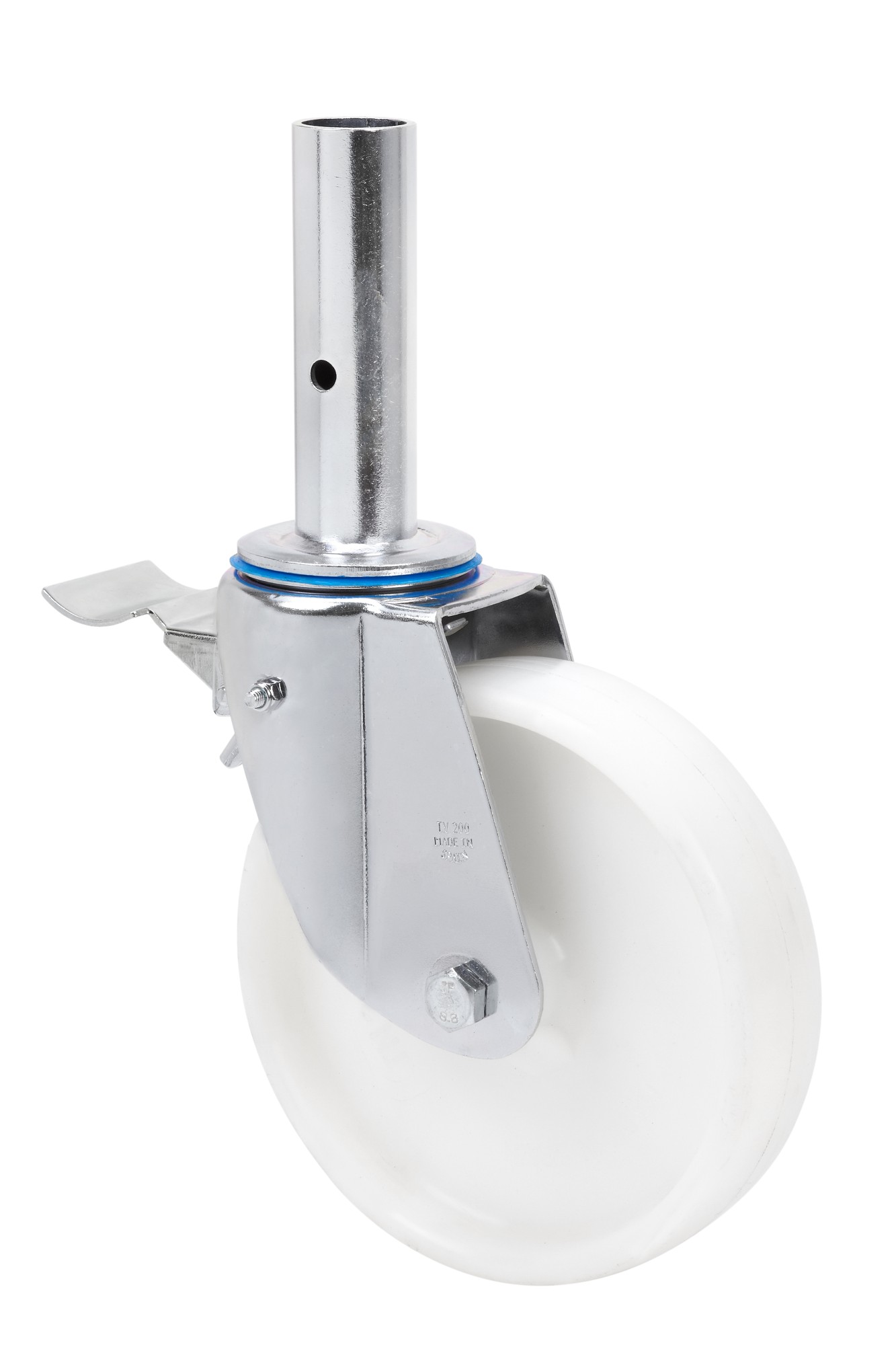 ALEX – RUEDA GIRATORIA.ANDAMIO FRENO 30TVAFD200-TN NYLON BLANCO EJE LISO