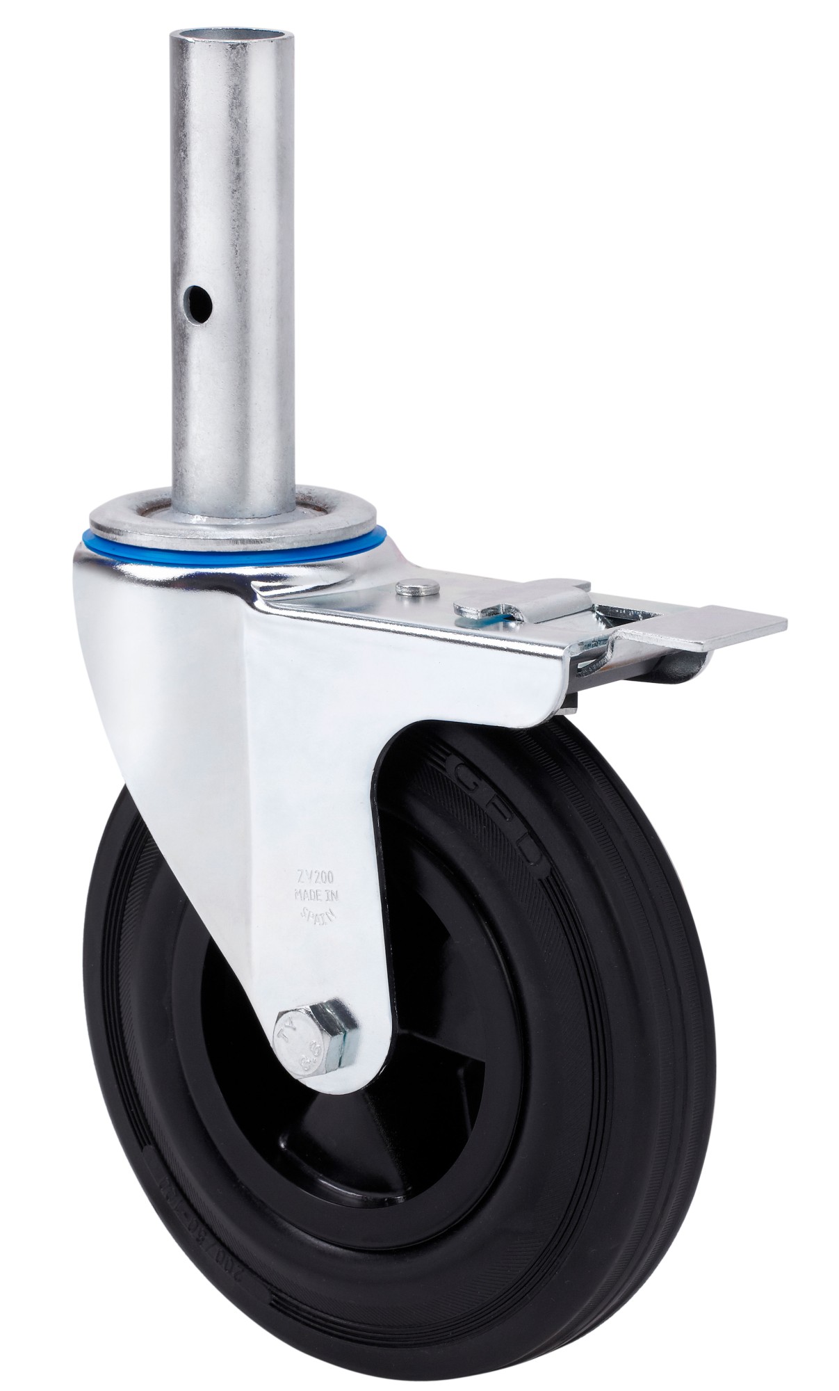 ALEX – RUEDA GIRATORIA.ANDAMIO FRENO 30ZVAFD200-PSN POLIAMIX-GOMA NEGRA EJE LISO