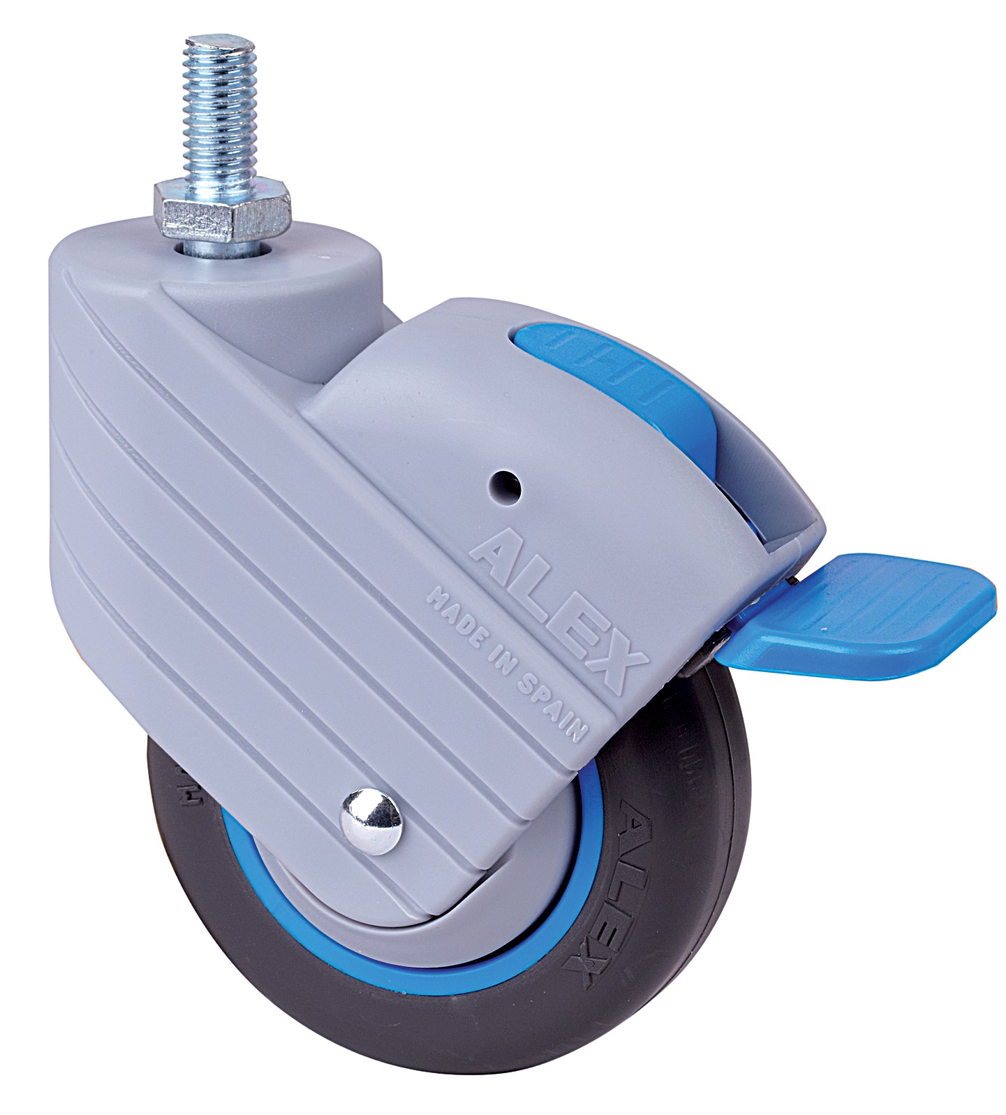 ALEX – RUEDA GIRATORIA.ESP.ROSC.M10x20 FR.AZUL 50HPFN100CP-PLGI POLIAMIX-GOM.NEG.LISO