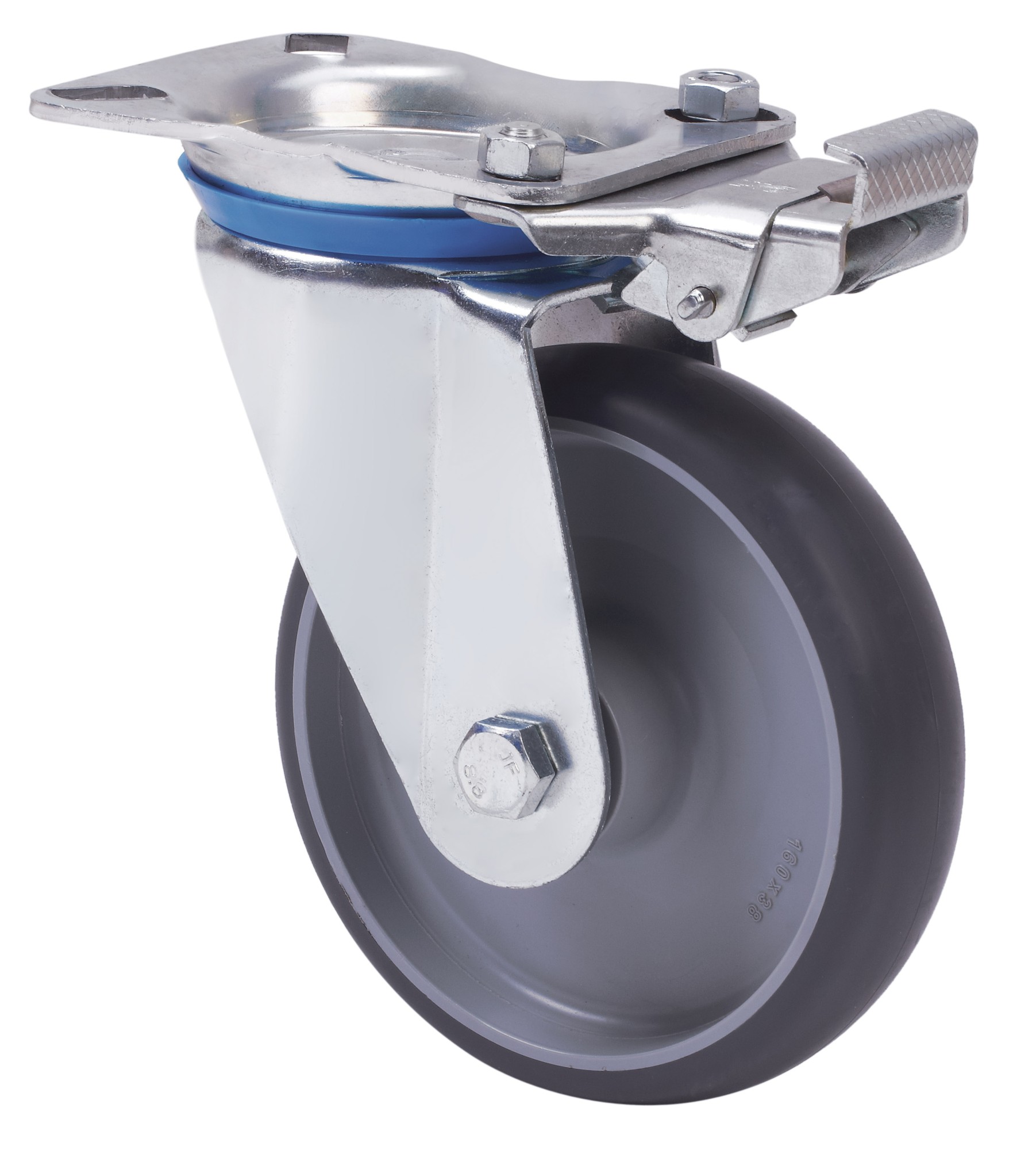 ALEX – RUEDA GIRATORIA.MEC.DIR.10ZVMD160-PGZN POLIAMIX-GOMA GRIS INYECT.EJE LISO
