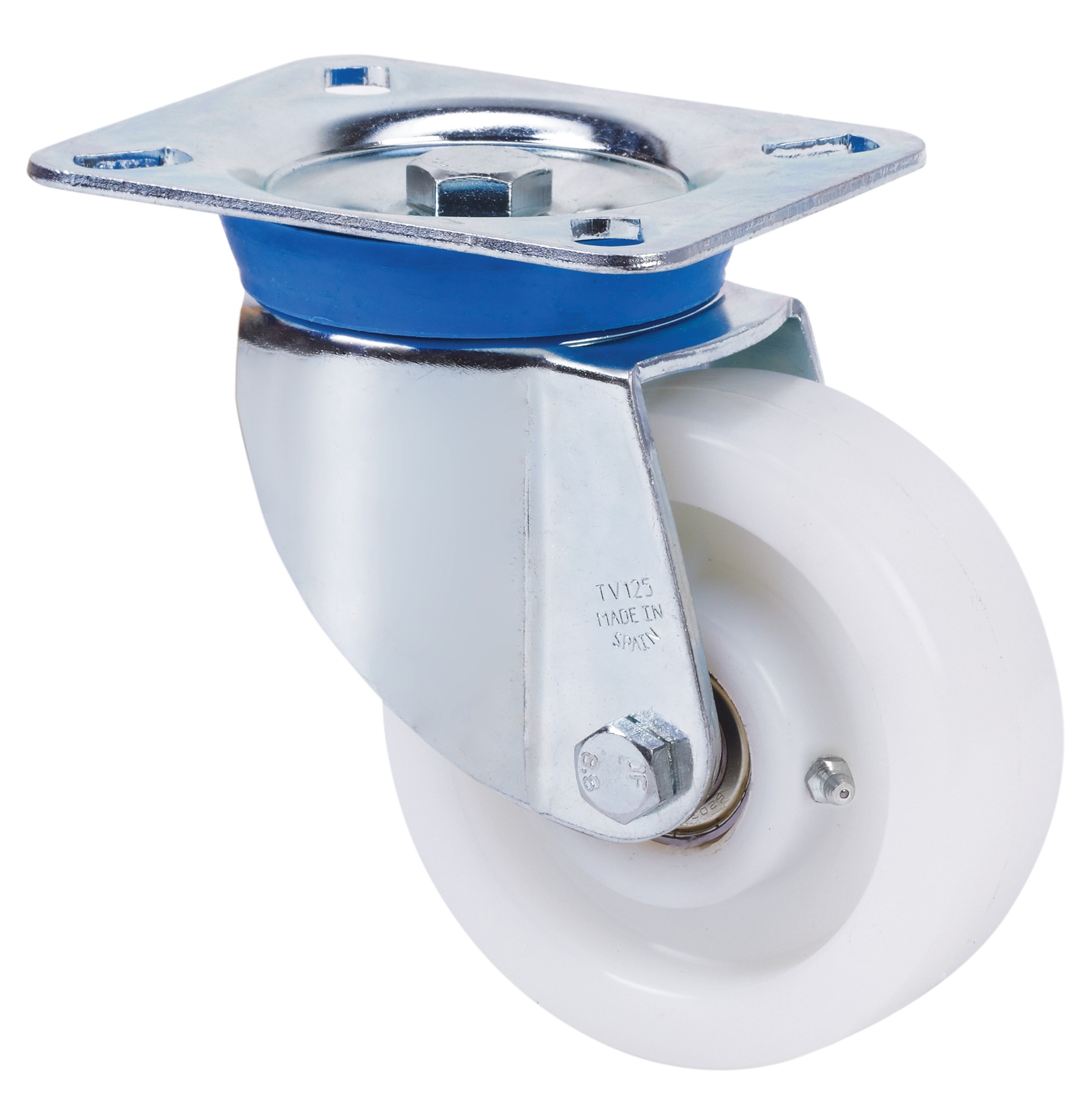 ALEX – RUEDA GIRATORIA.PLACA 10TV200-FT NYLON BLANCO EXTRAFUERTE EJE LISO