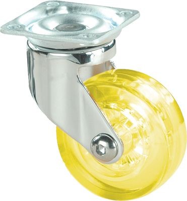 ALEX – RUEDA GIRATORIA.PLACA CROMADA PULIDA 10MDC50 POLIUR.AMARILLO EJE LISO