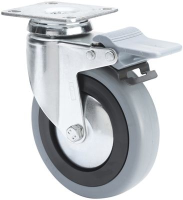 ALEX – RUEDA GIRATORIA.PLACA FRENO 10BHAFD125CP-PGAN POLIAMIX-GOMA GRIS EJE LISO