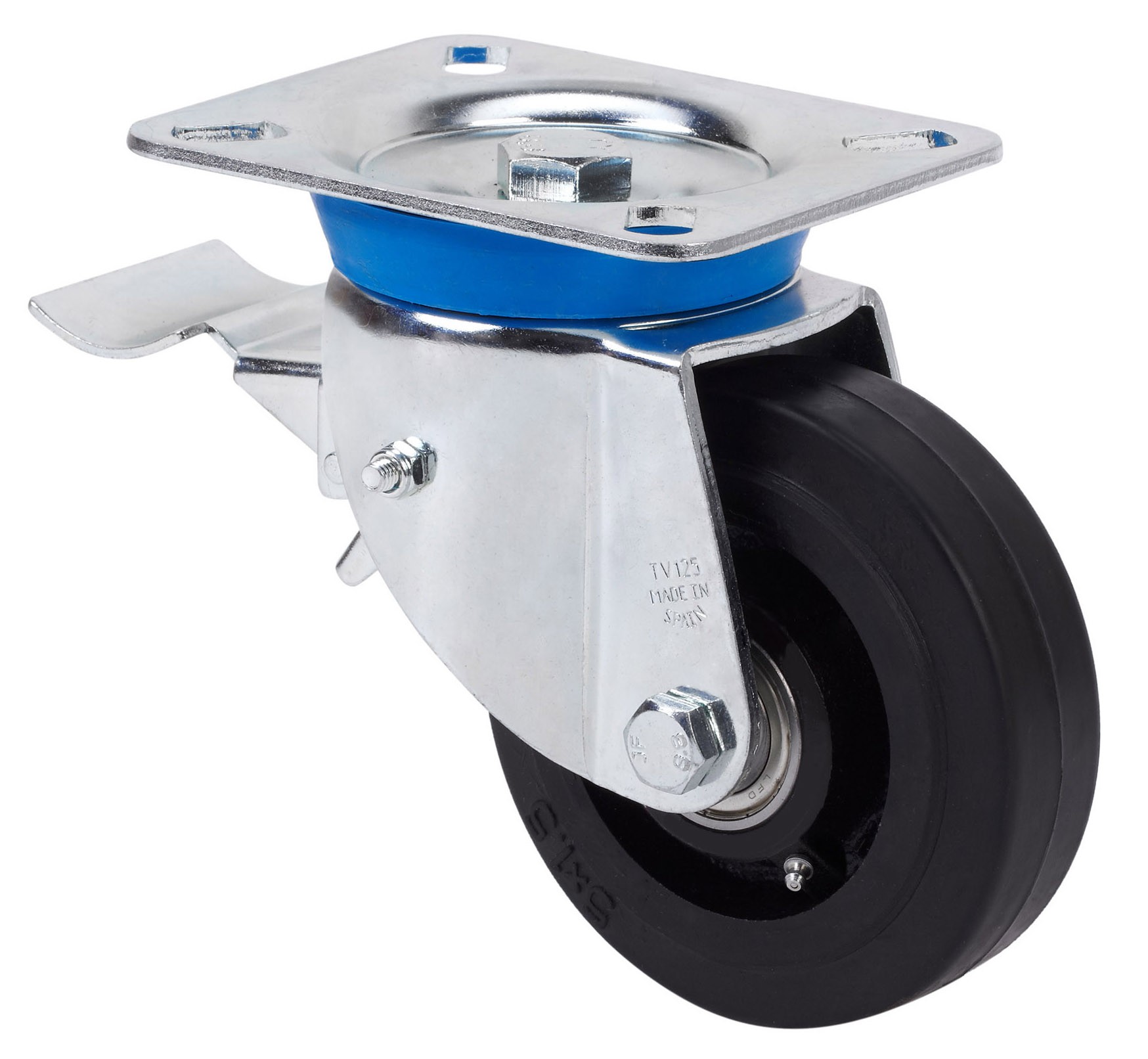 ALEX – RUEDA GIRATORIA.PLACA FRENO 10TVFD125-HGB HIERRO-GOMA NEGRA NATURAL EJE BOLAS