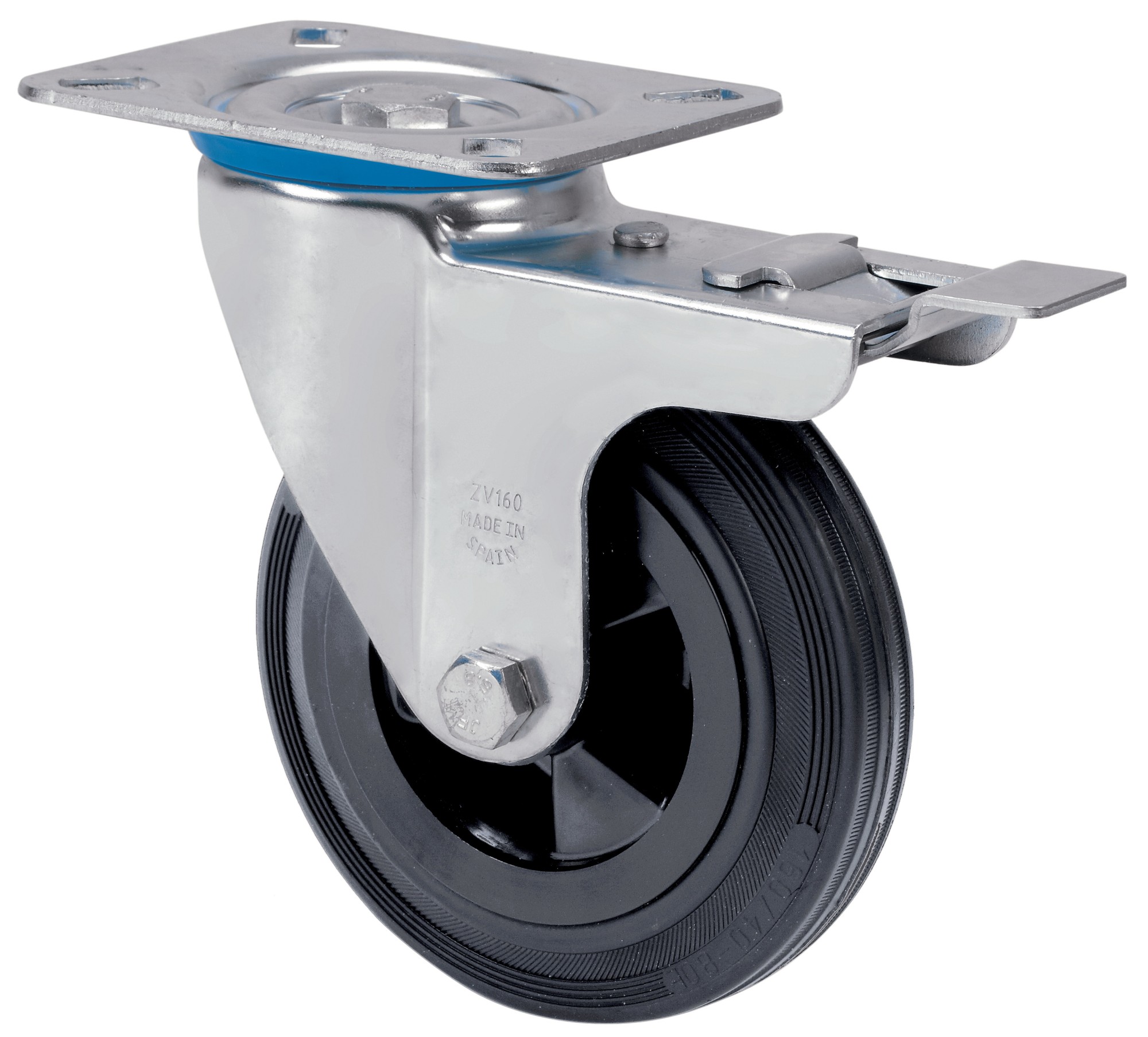 ALEX – RUEDA GIRATORIA.PLACA FRENO 10ZVFD125-PSN POLIAMIX-GOMA NEGRA EJE LISO