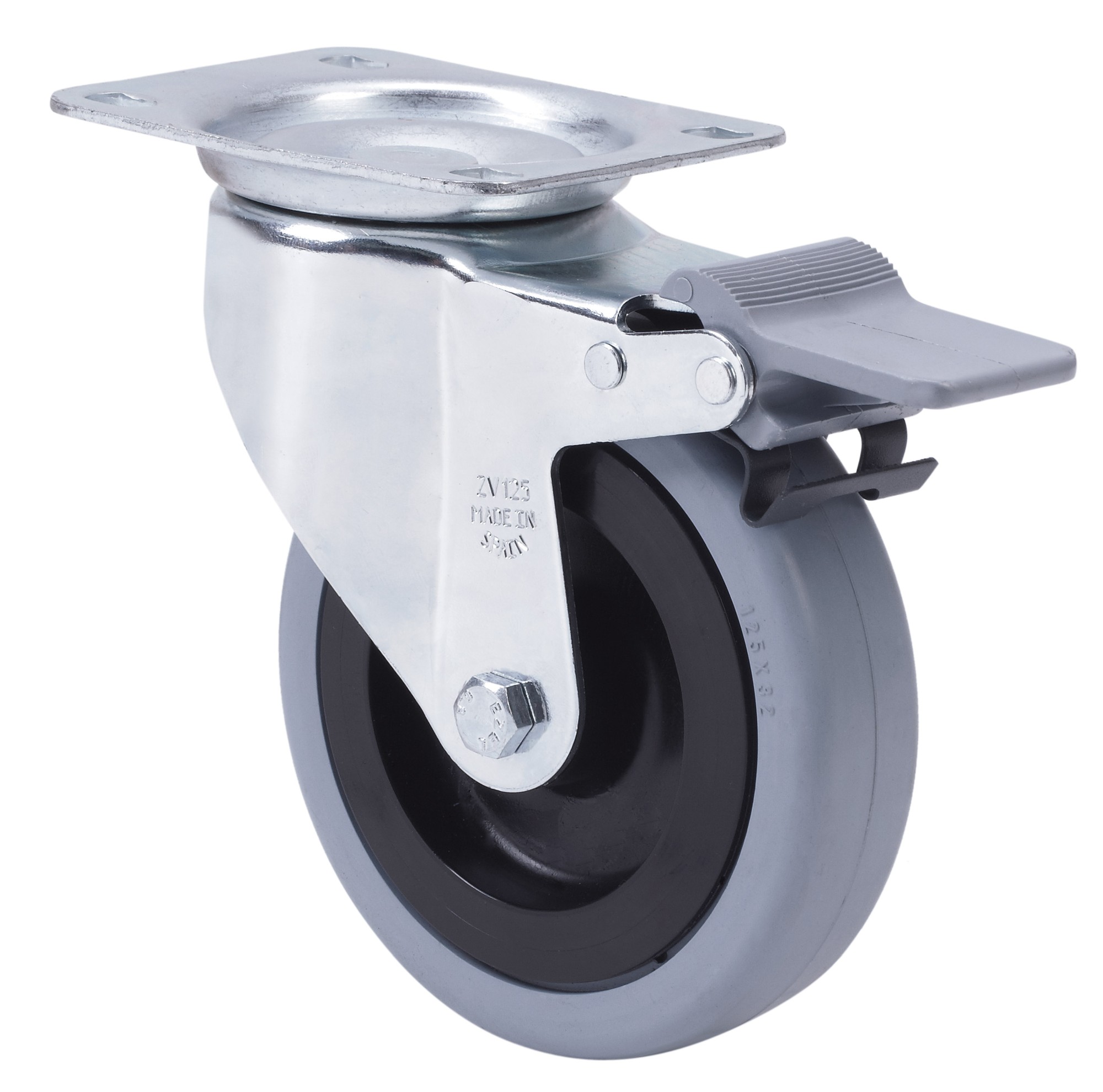 ALEX – RUEDA GIRATORIA.PLACA FRENO 10ZVLFD100CP-PGASB POLIAMIX-GOMA GRIS EJE BOLAS
