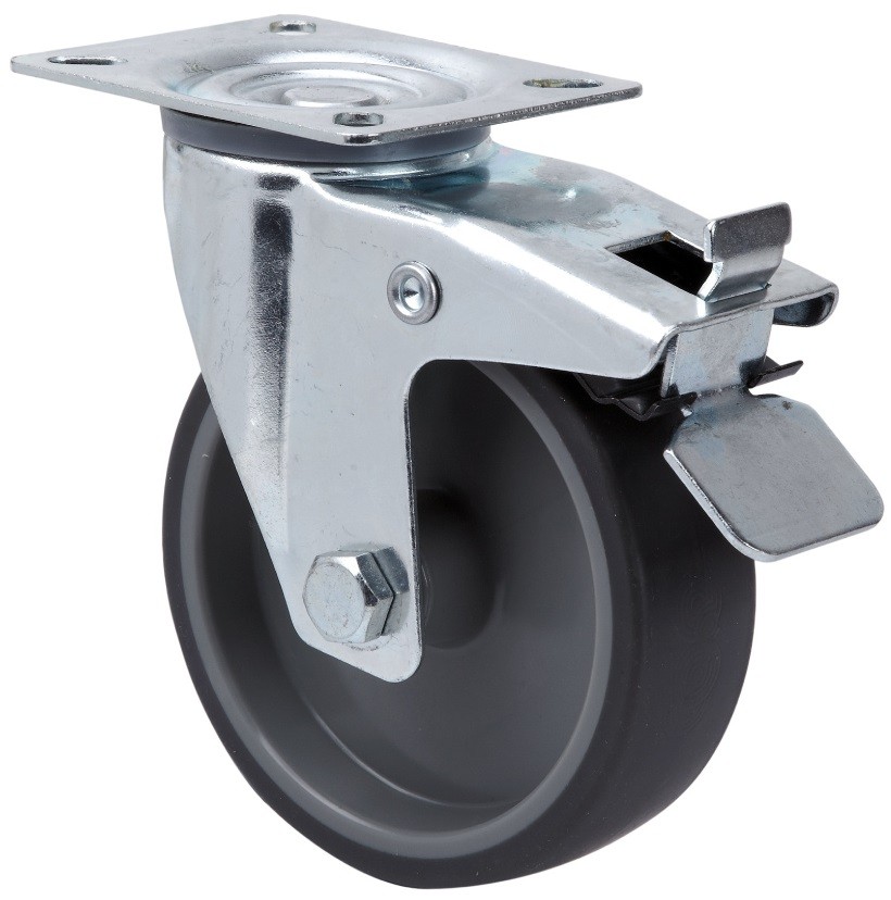 ALEX – RUEDA GIRATORIA.PLACA FRENO 124.1-200-3 POLIAMIX-GOMA GRIS EJE LISO