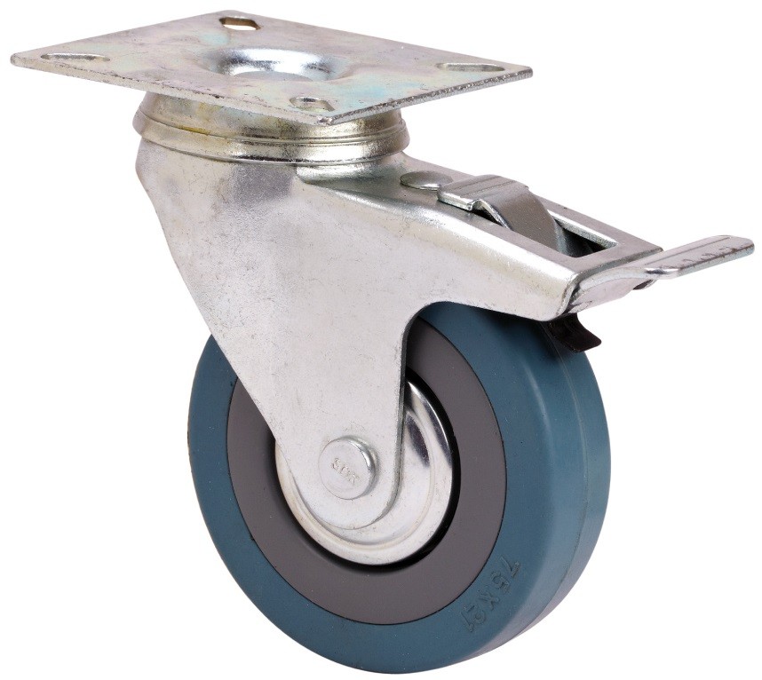 ALEX – RUEDA GIRATORIA.PLACA FRENO 310-100-3 CP POLIAMIX-GOMA GRIS EJE LISO