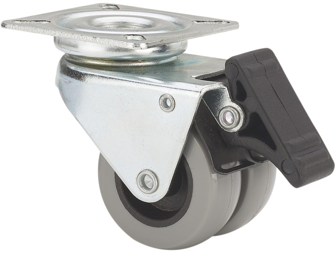 ALEX – RUEDA GIRATORIA.PLACA FRENO 410-050-3 POLIAMIX-GOMA GRIS (DOBLE) EJE LISO
