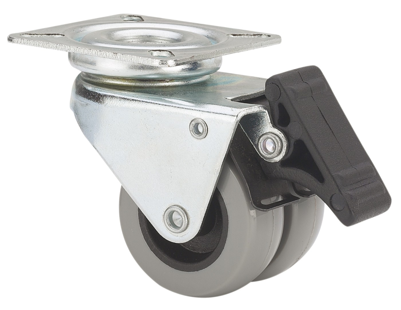 ALEX – RUEDA GIRATORIA.PLACA FRENO 411-050-3 POLIAMIDA GRIS (DOBLE) EJE LISO