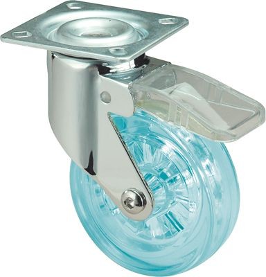 ALEX – RUEDA GIRATORIA.PLACA FRENO CROMADA PULIDA 10MDCFN50 POLIUR.AZUL EJE LISO