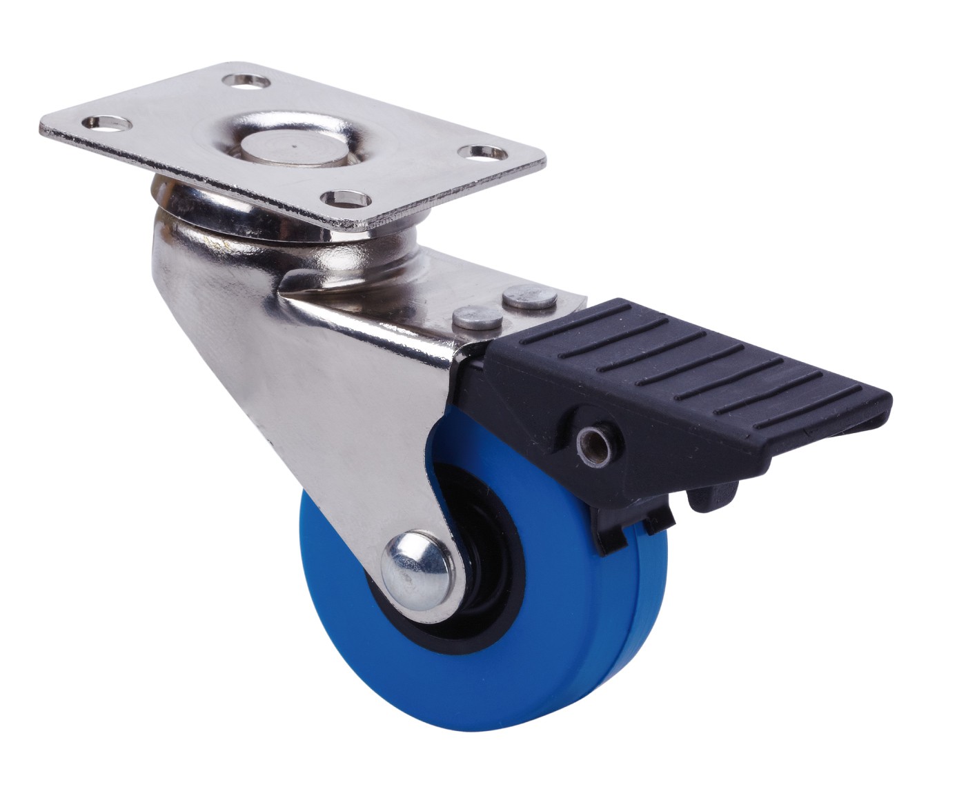 ALEX – RUEDA GIRATORIA.PLACA FRENO NIQUEL.10BDRFN40-PUA POLIAMIX-POLIUR.AZUL EJE LISO