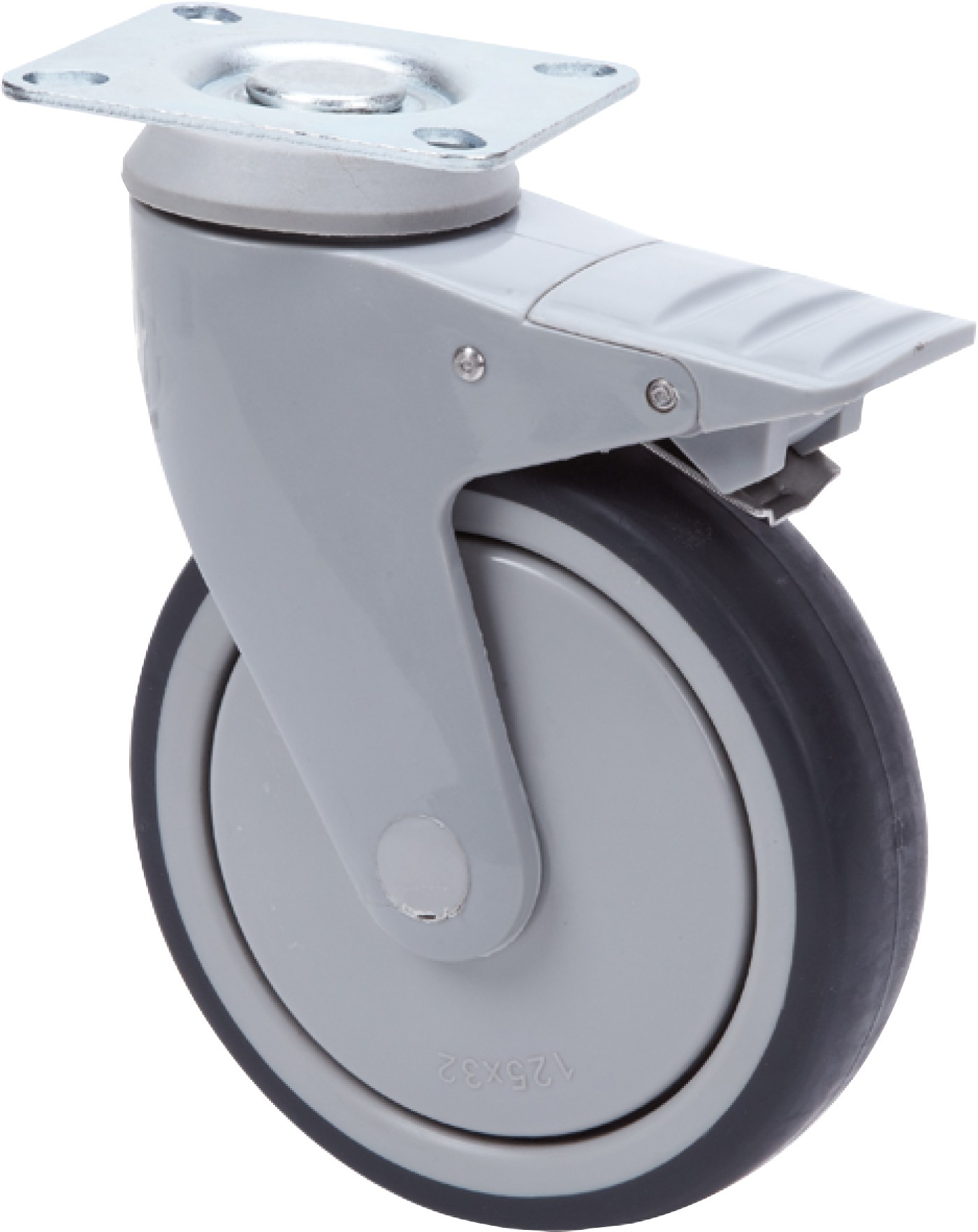 ALEX – RUEDA GIRATORIA.PLACA FRENO NYLON 10ANFD100-AN POLIUR.GRIS INYECT.EJE BOLAS