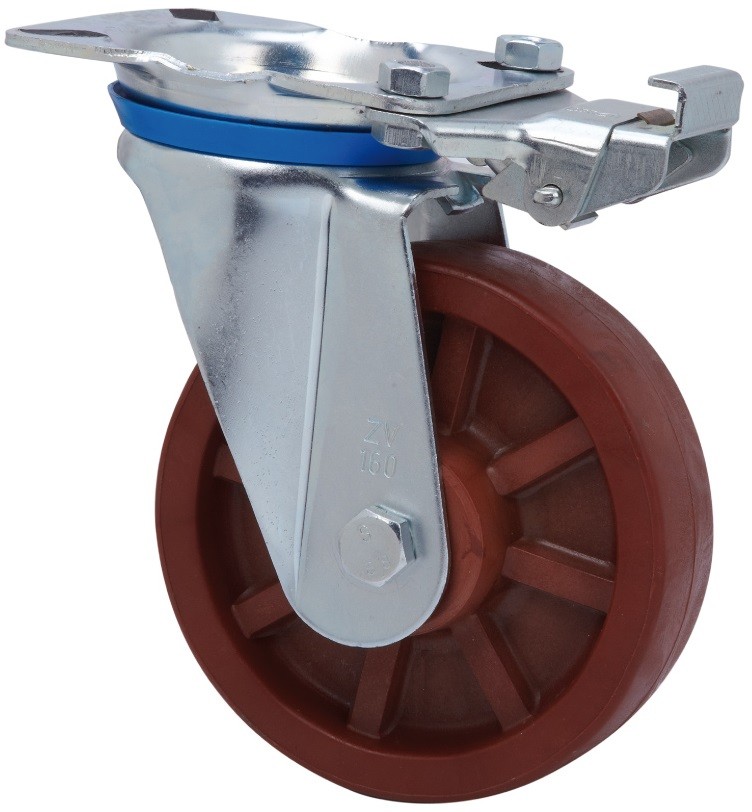 ALEX – RUEDA GIRATORIA.PLACA MEC.DIR.10ZVMD150-TD RESINA MARRON EJE LISO