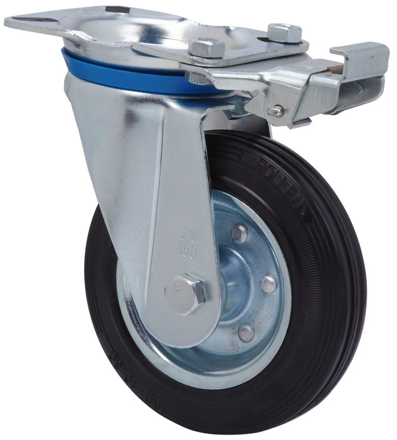 ALEX – RUEDA GIRATORIA.PLACA MEC.DIR.10ZVMD160-BSR METALICO-GOMA NEGRA EJE RODILLOS