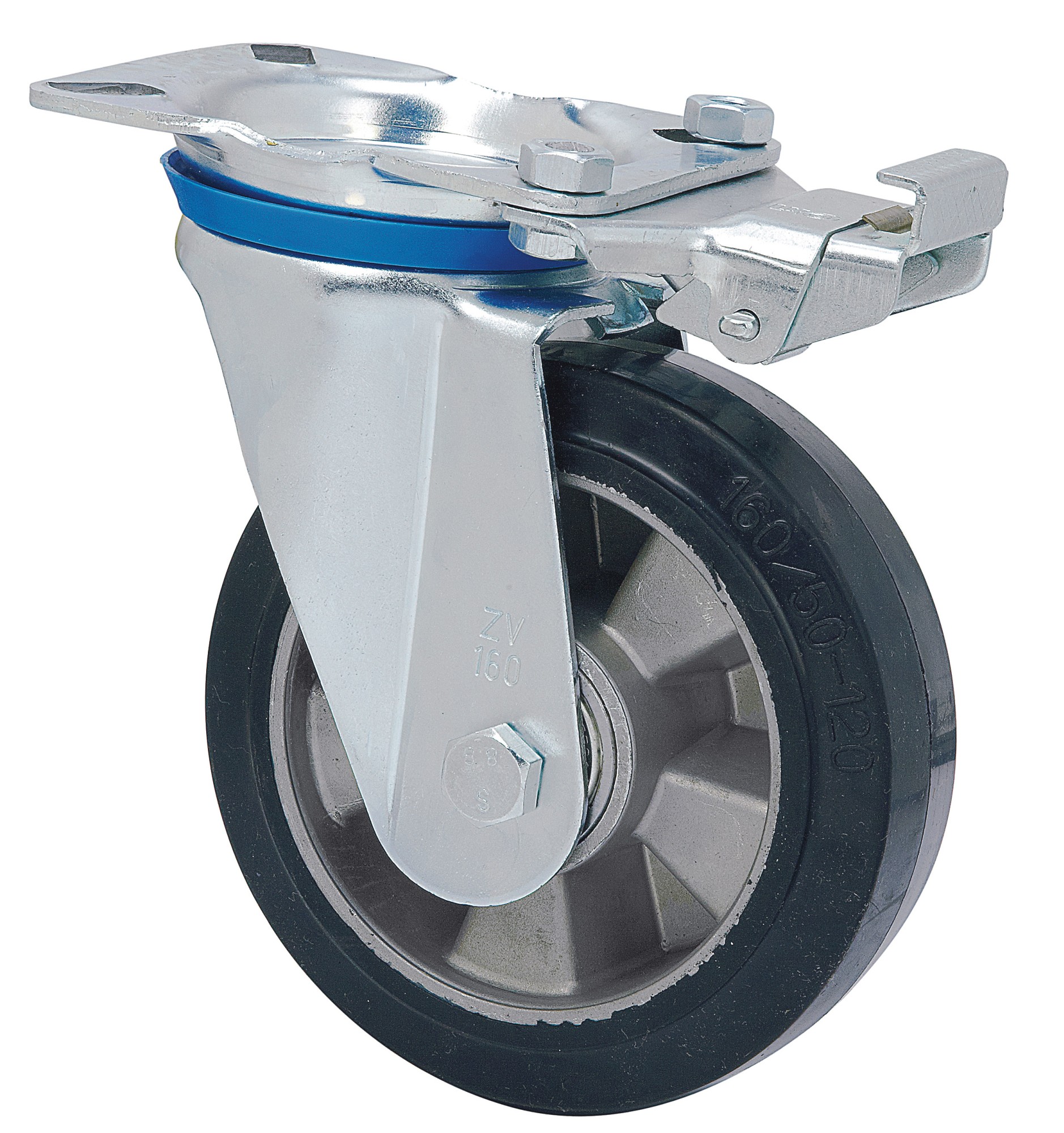 ALEX – RUEDA GIRATORIA.PLACA MEC.DIR.10ZVMD160-DEB ALUMINIO-GOMA NEGRA ELASTICA BOLAS