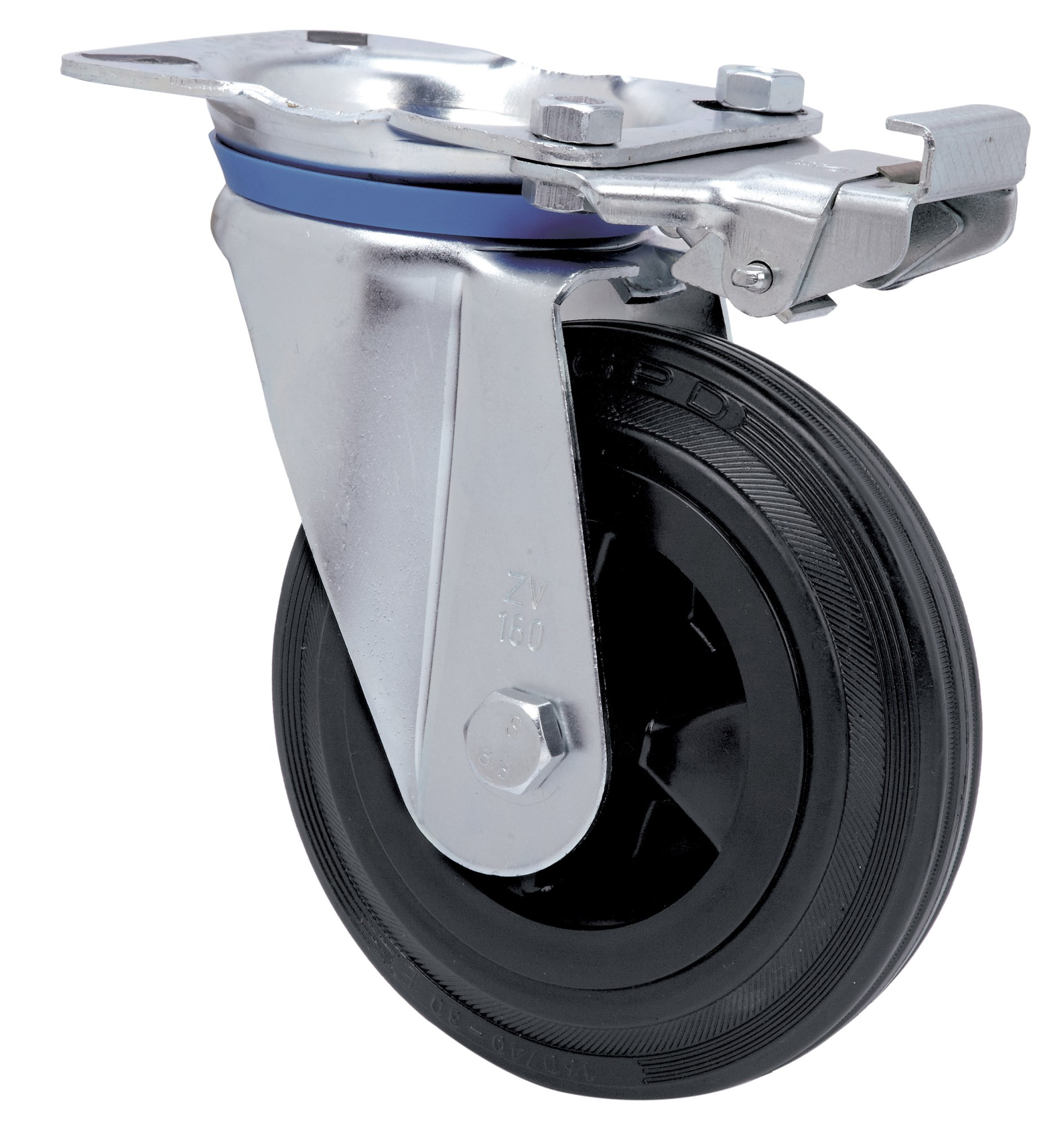 ALEX – RUEDA GIRATORIA.PLACA MEC.DIR.10ZVMD200-PSR POLIAMIX-GOMA NEGRA EJE RODILLOS