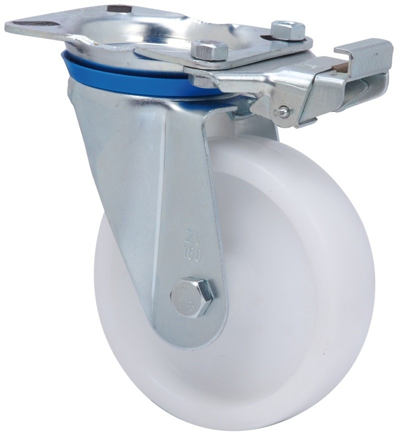ALEX – RUEDA GIRATORIA.PLACA MEC.DIR.10ZVMD200-UT POLIAMIX BLANCO EJE LISO