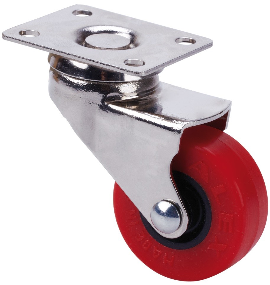 ALEX – RUEDA GIRATORIA.PLACA NIQUEL.10BDR60CP-PPI POLIAMIX-POLIUR.ROJO EJE LISO