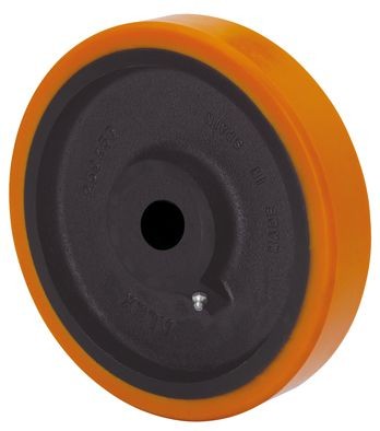 ALEX – RUEDA HUN300-30-82 NUCLEO HIERRO Y BANDA POLIUR.NARANJA EJE LISO