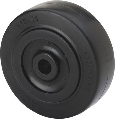 ALEX – RUEDA TPGN125-16-53 NUCLEO NYLON NEGRO Y BANDA GOMA NEGRA EJE LISO