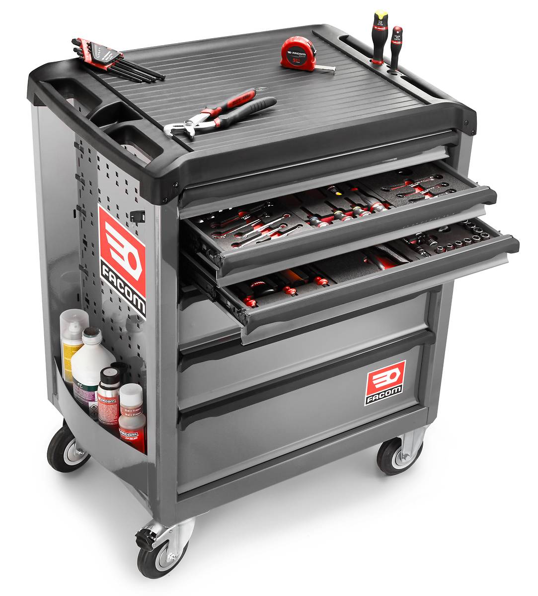 Los cajones pueden estar equipados con todos los módulos termo-formados o de espuma del programa Facom Modular system (Capacidad de 15 módulos repartidos en los cajones de 60 y 130 mm, los cajones de 200 también pueden recibir módulos.
