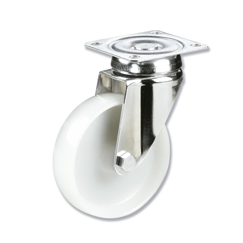 ALEX – RUEDA GIRATORIA.PLACA 10BH100-SL PLASTICO BLANCO EJE LISO