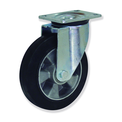 ALEX – RUEDA GIRATORIA.PLACA 10BH80CP-PGI POLIAMIX-GOMA GRIS EJE LISO