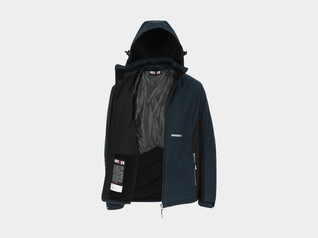 Herock – CHAQUETA TARIS – L AZUL MARINO/NEGRO Tejido laminado: 300 g/m² – Exterior: 100% poliéster Ripstop con estiramiento mecánico – Interior: 100% microfelpa de poliéster – Acolchado: 100% poliéster – Forro: 100% poliéster – Forro interior reflectante de calor: 100% malla de poliéster