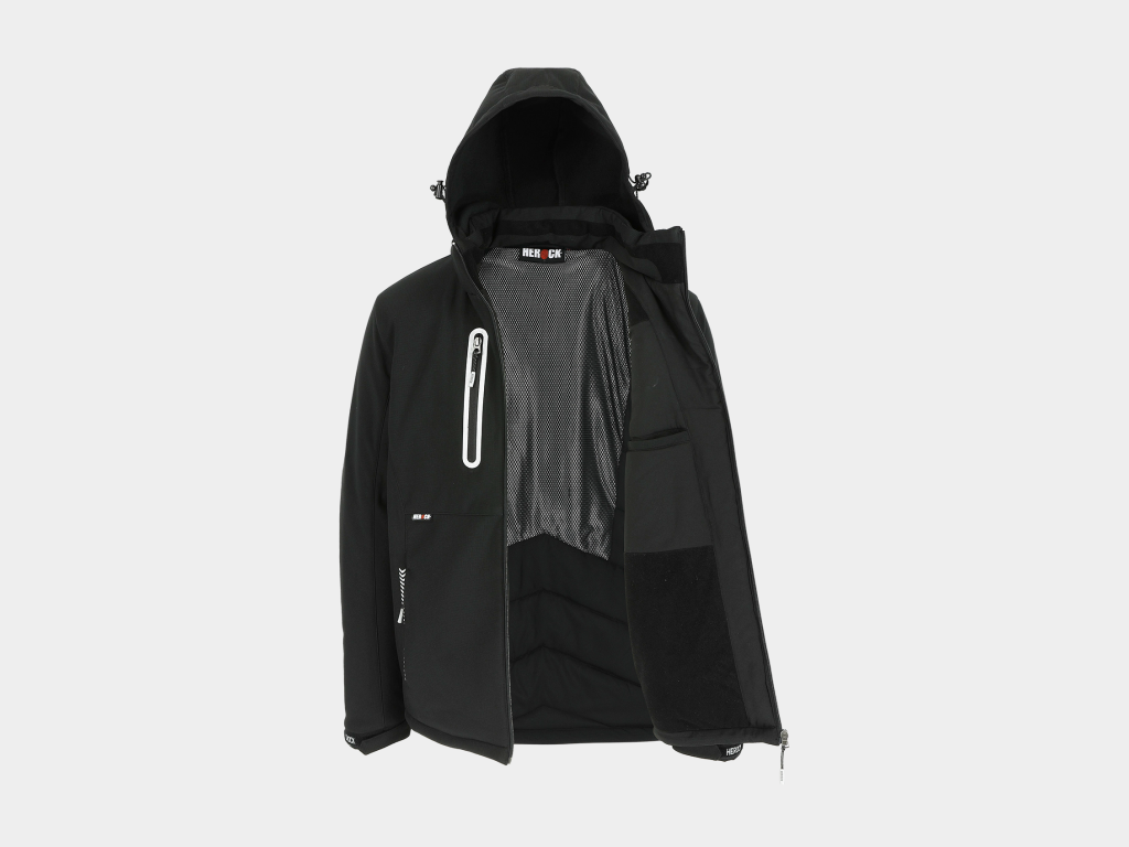 Herock – CHAQUETA TRYSTAN – XXXL NEGRO Tejido laminado 300 /m2 – Exterior: 100% poliéster Ripstop con estiramiento mecánico – Interior: 100% forro polar micro-fleece de poliester