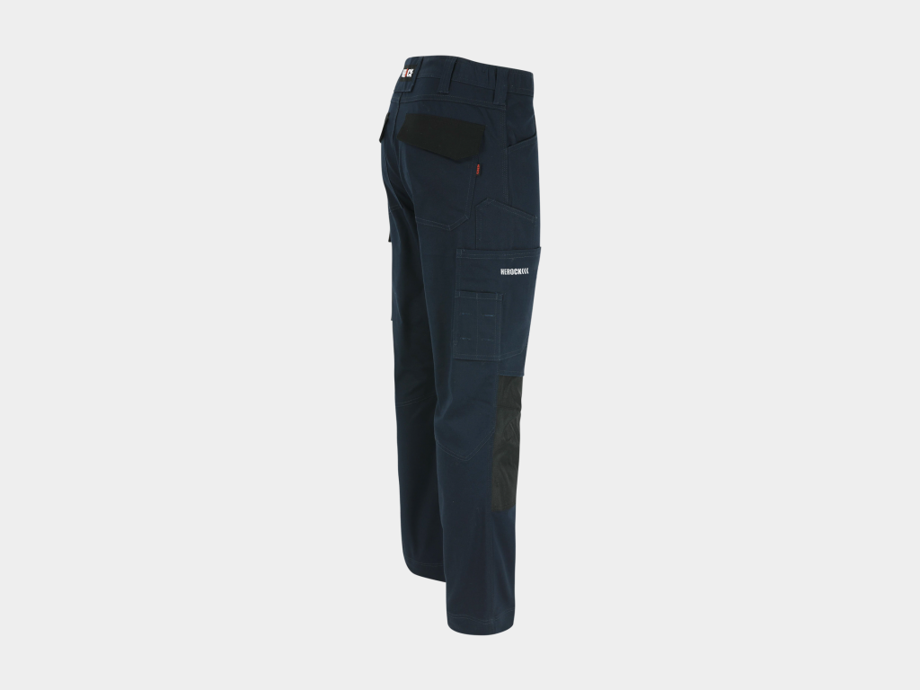 Herock – PANTALÓN DERO – 40 AZUL MARINO 98% algodón – 2% elastano 275 g/m² – Tejido de refuerzo: 100% poliéster Oxford 600D Repelente al agua