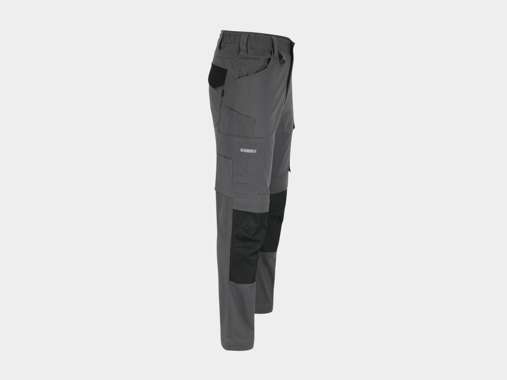 Herock – PANTALÓN DERO – 58 GRIS ANTRACITA/NEGRO 98% algodón – 2% elastano 275 g/m² – Tejido de refuerzo: 100% poliéster Oxford 600D Repelente al agua