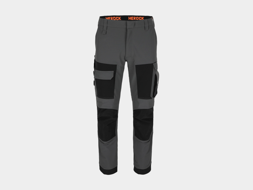 Herock – PANTALÓN FARO – 42 GRIS ANTRACITA/NEGRO 92% poliamida reciclada – 8% elastano 260 g/m² Refuerzo: 51,4% poliéster Cordura® – 48,6% poliéster Sorona® 326 g/m² repelente al agua